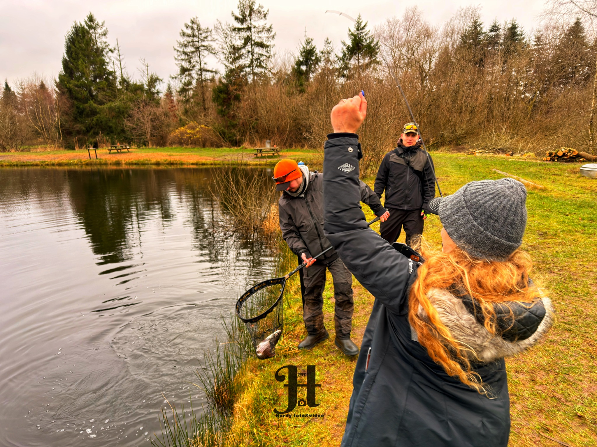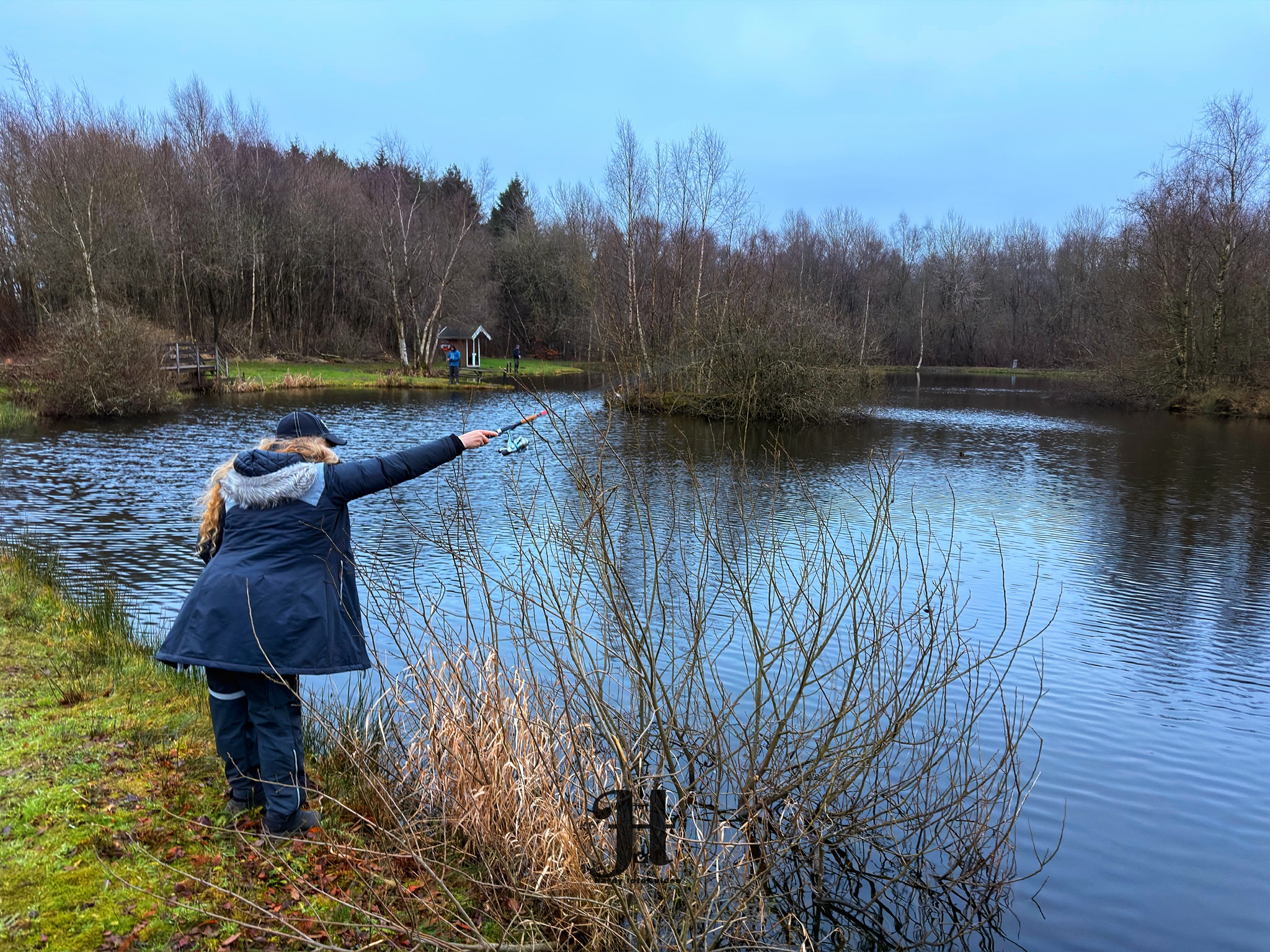 Da vi ankom til søen, var der kun en anden lystfisker ved søen. Der skulle ikke gå længe inden Rasmus Wølck dukkede op. Vi startede fiskeriet og chokerende nok havde fotografen aka min mand også besluttet sig for, at han skulle prøve kræfter med fiskeriet. For hele 3 gang i hans liv. Og det skal siges, at det blev noget af en oplevelse! Min plan var, at forsøge at fiske lidt mere end jeg plejer, i håbet om endelig, at få knækket koden igen. Det måtte jeg godt nok også kæmpe for…